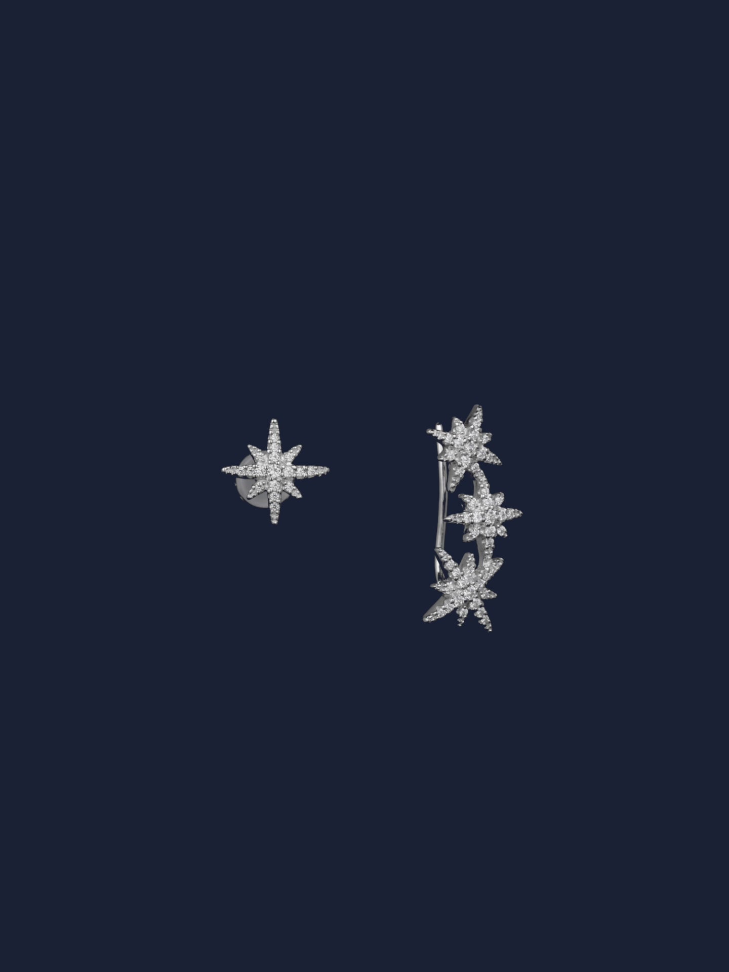 Información adicional: el arete de estilo trepador Météorites puede lucirse únicamente en la oreja izquierda, y el botón puede lucirse en ambas orejas.