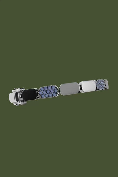 Las radiantes piedras azules complementan con elegancia el diseño de esta pulsera para crear un contraste cautivador.
