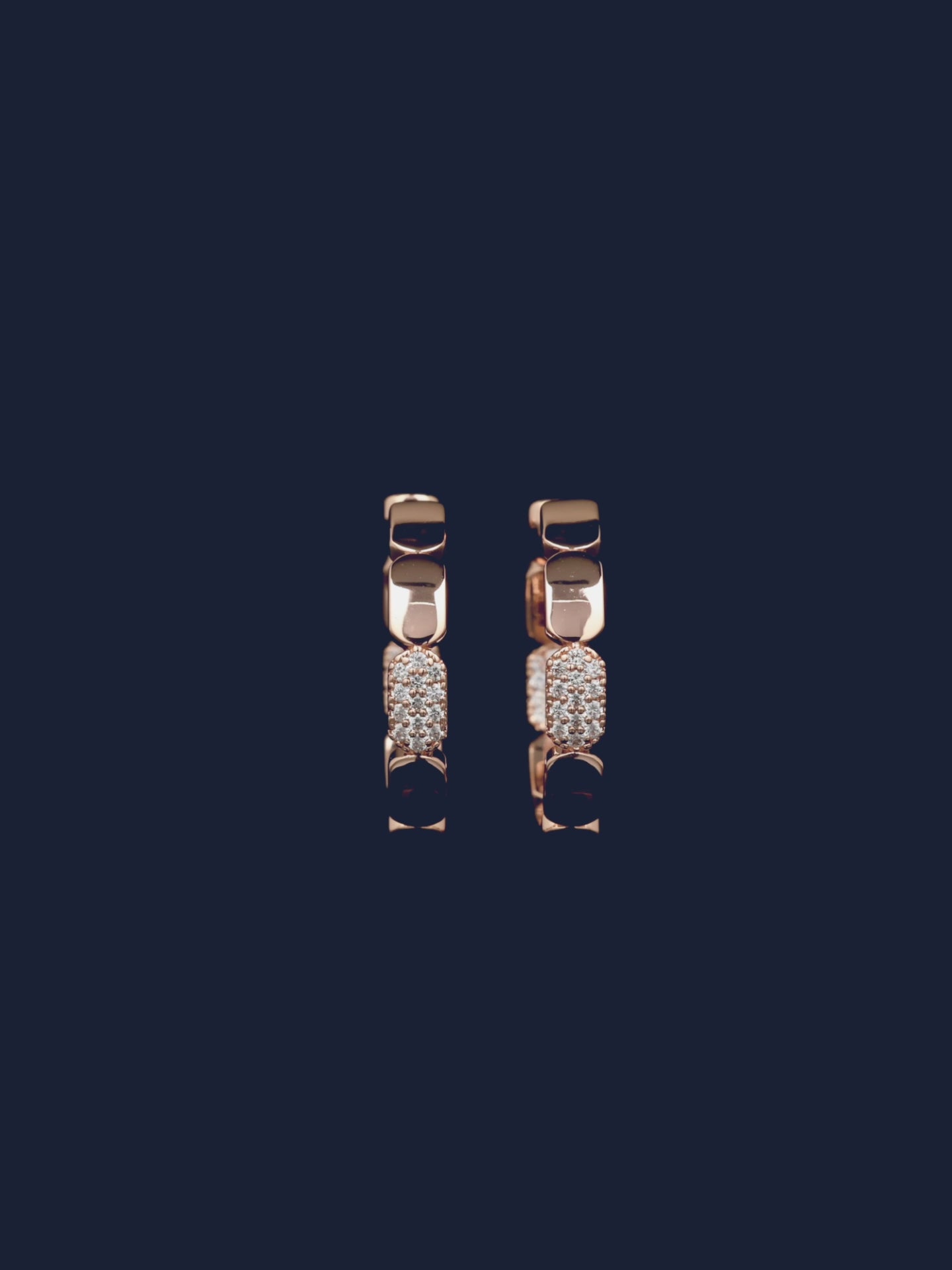 - Material: APM Rose Alloy compuesto por un 95% de material reciclado y chapado en oro de 18k, circonitas cúbicas blancas, antideslustre e hipoalergénico