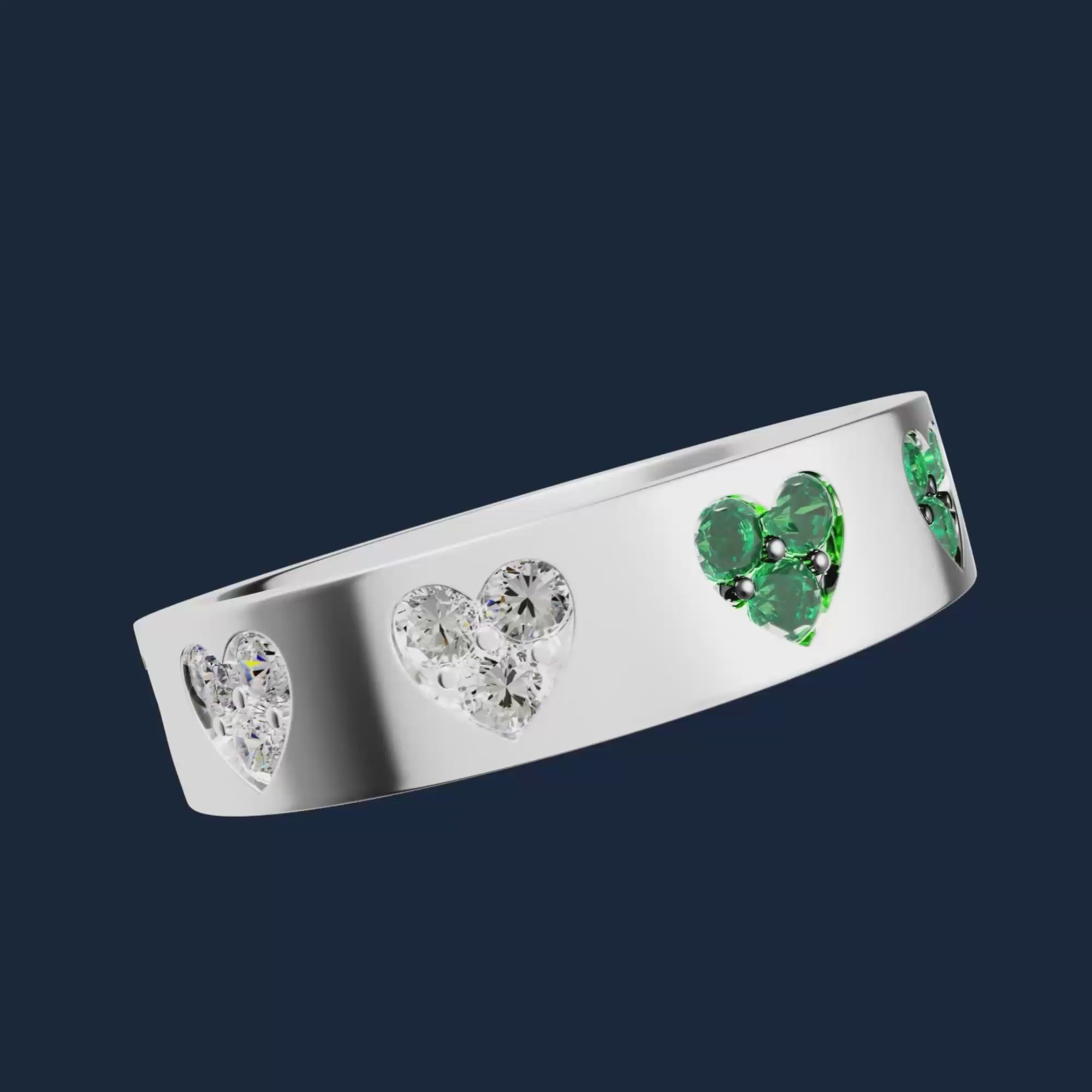 Presentamos el lenguaje del amor según APM… Este anillo, adornado con piedras blancas y verdes, dibuja delicados corazones que celebran el romance con brillo y elegancia.