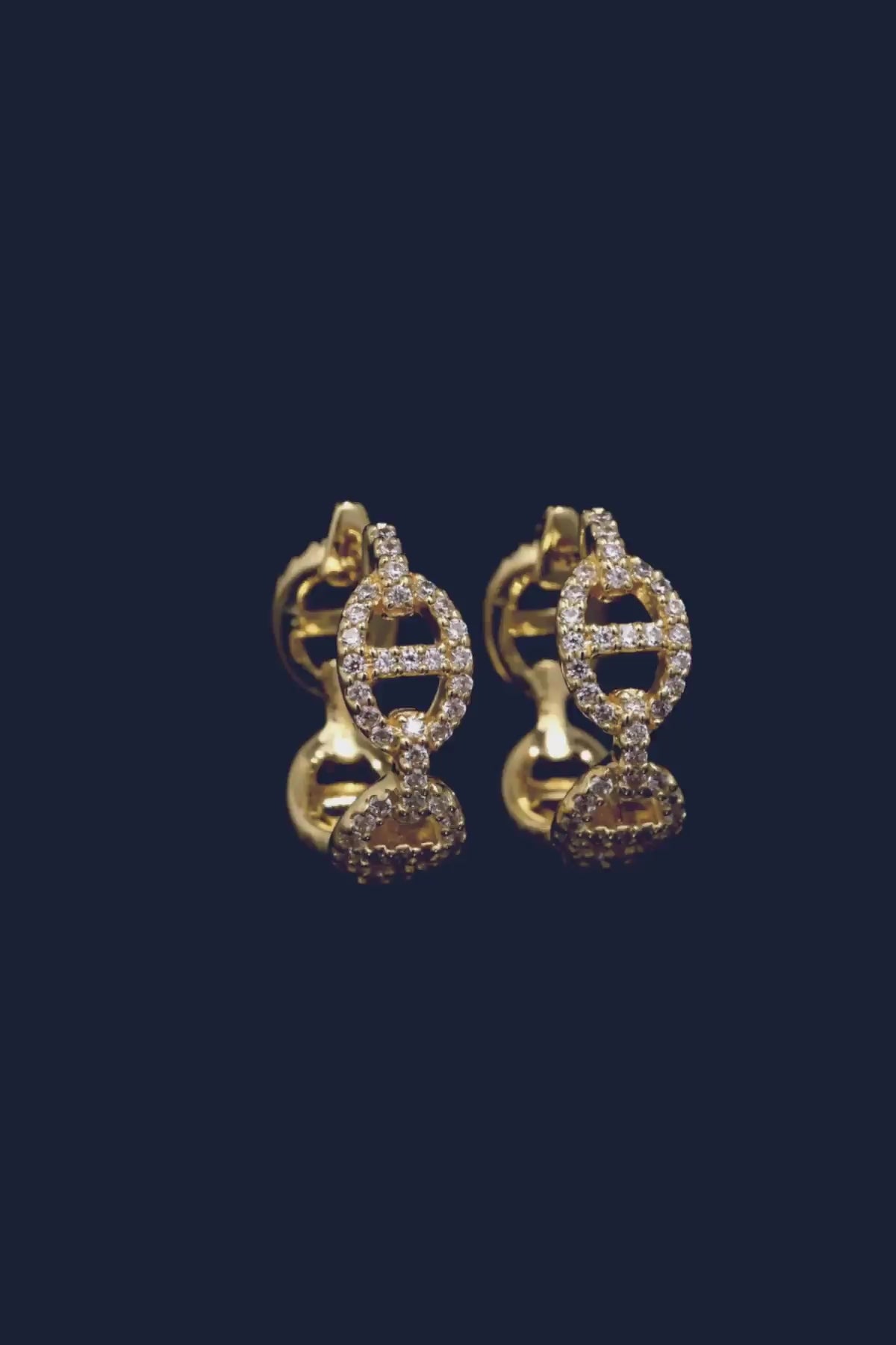 - Material: APM Yellow Alloy made of 95% recycled material and 18k gold plated, white cubic zirconia, Es antideslumbrante y antialérgica