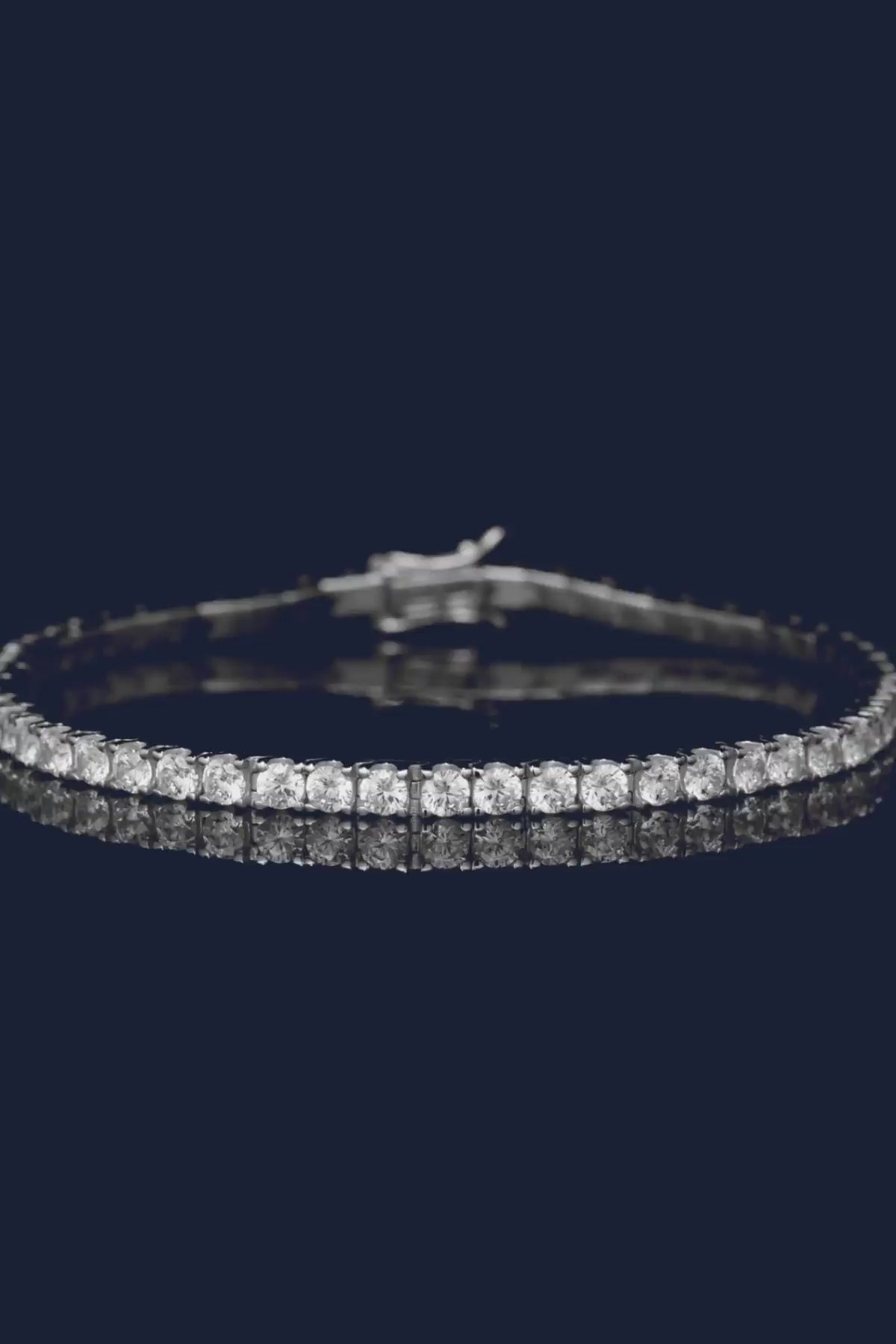 Esta pulsera está hecha a mano en plata de ley y engastada con circonitas blancas en pavé.
