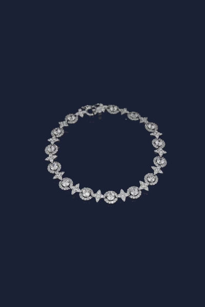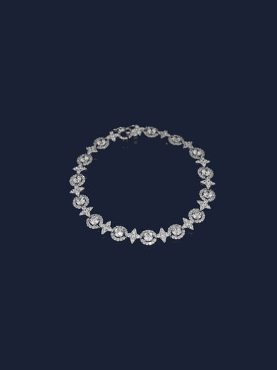 Este brazalete está hecho a mano en plata de ley y enpavesado con circonitas cúbicas blancas.