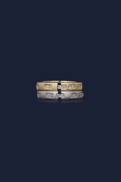 Este anillo está hecho a mano de plata de ley y pavimentados con blancas circonitas cúbicas. Está microengastados con circonitas cúbicas blancas para formar la palabra TOI ET MOI en el lenguaje secreto del Código Morse. El significado también está grabado en el interior.