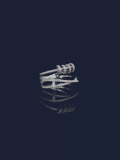 Consiga un look sofisticado con este anillo plateado adornado con cinco aros deslizantes revestidos. Este anillo es una de las joyas estrella de APM.
