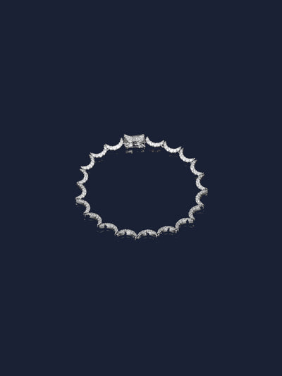 Esta pulsera está hecha a mano en plata esterlina y microengastada con zirconia cúbica blanca.