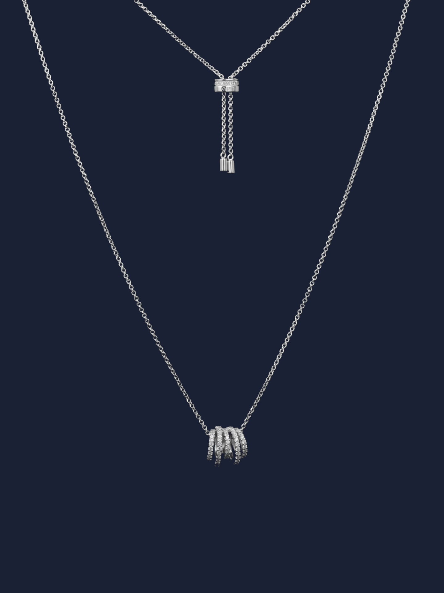 Conserve su elegancia con este collar ajustable y su colgante de aros revestidos. Combínelo con otras joyas APM en plata para resplandecer aún más.