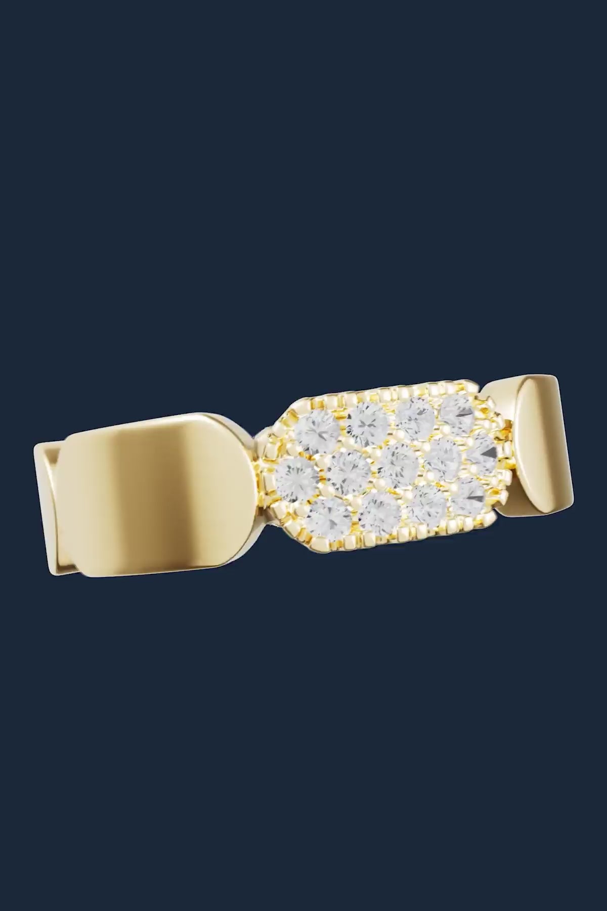 This ring is made with APM Alloy and 18k yellow gold plated. It is microset with white cubic zirconia.