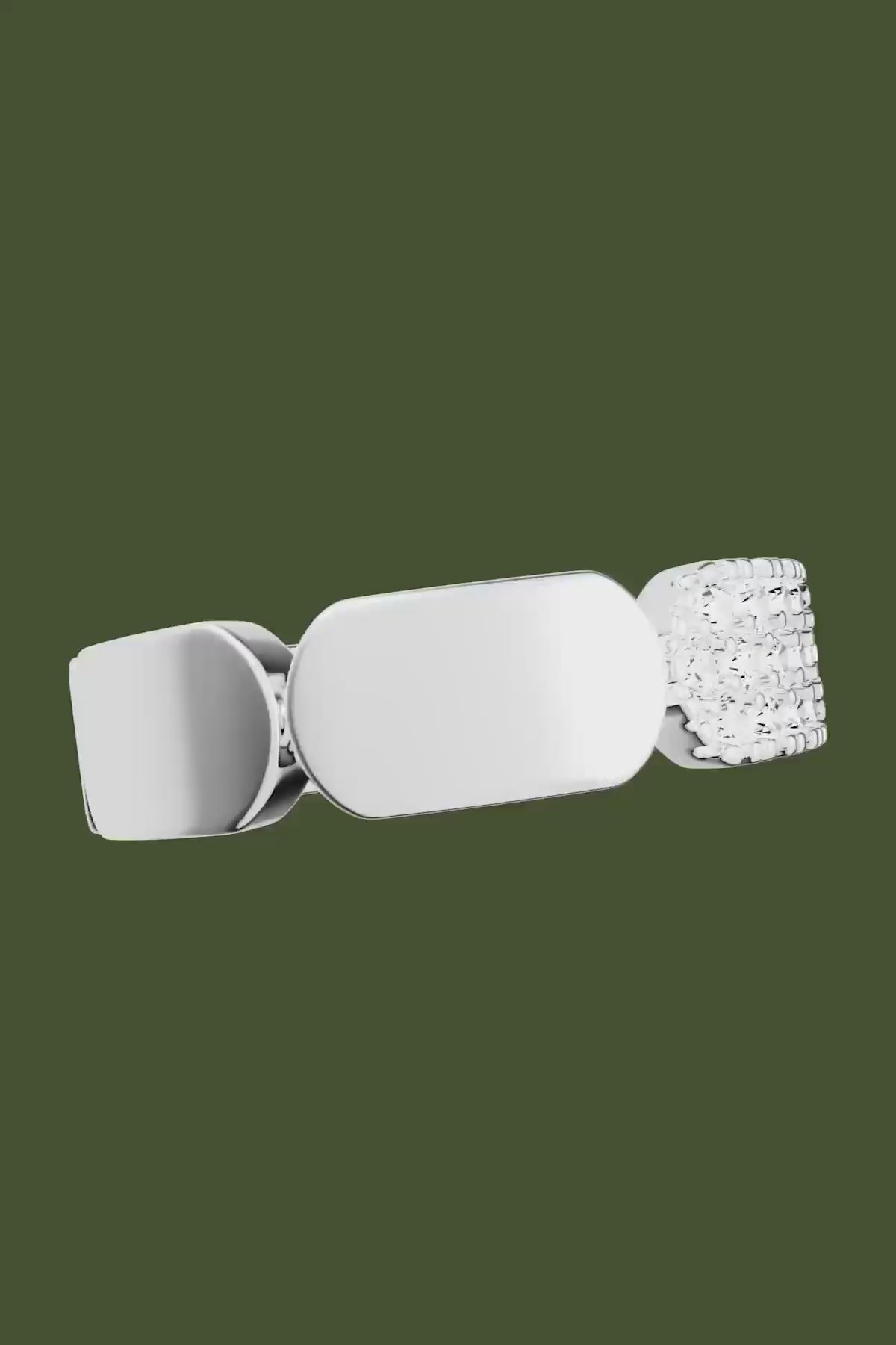 The radiant stones elegantly complements this ring's design, creating a captivating contrast.
