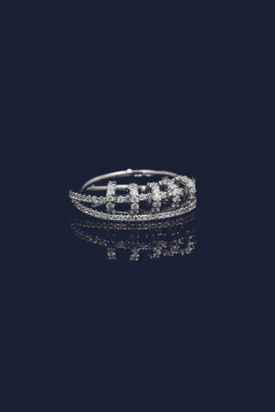 Stand out with this silver ring embellished with white stones. With its sophisticated five sliding hoops design, it will become your must-have jewel.