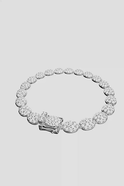 This bracelet, meticulously adorned with hundreds of stones, capture the delicate shape of snowflakes. It transitions effortlessly from day to night.