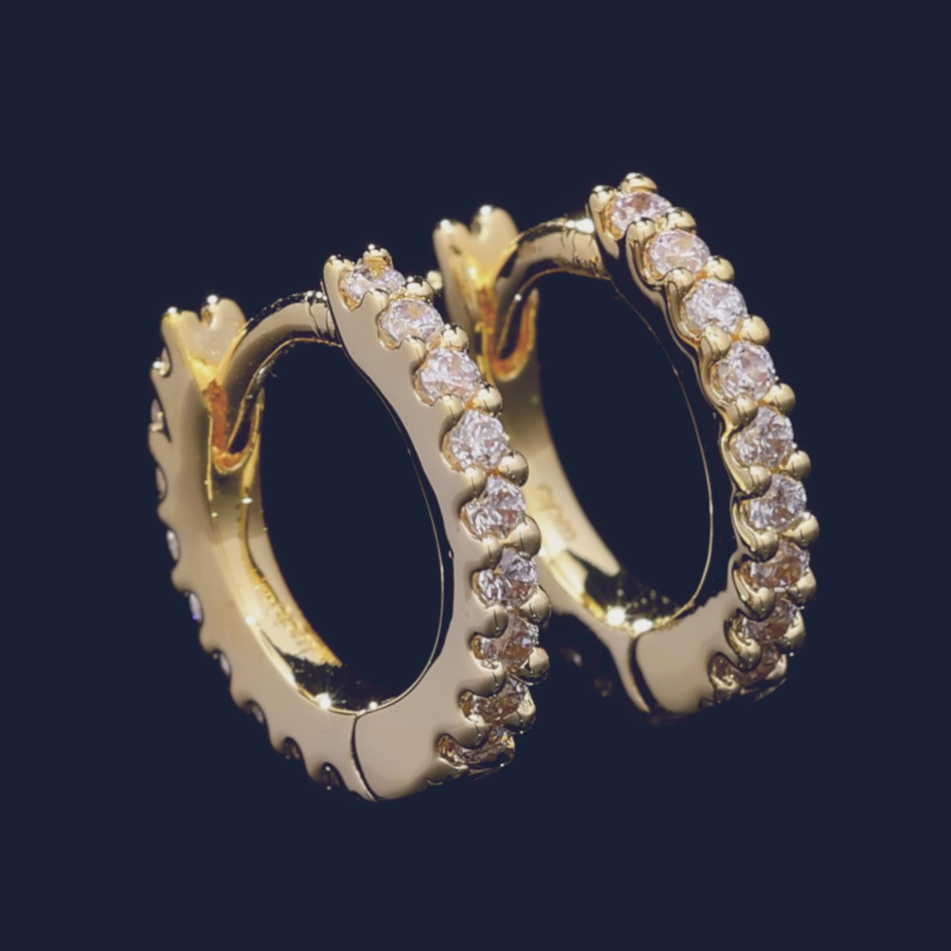 - All our huggie earrings are handcrafted and microset by hand in our ateliers