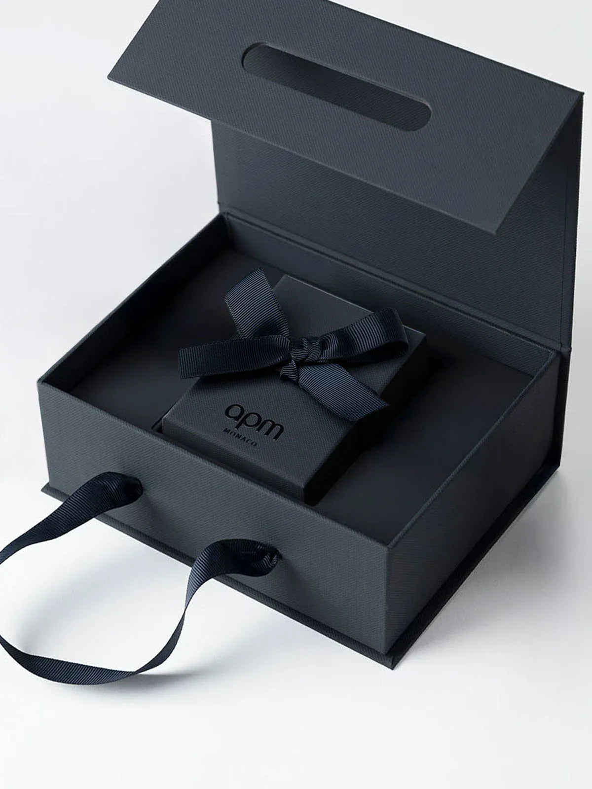 当然,所有商品都会以 APM Monaco的标志性包装精美呈现。包装包括一个带有提手的 APM 蓝色外包装礼盒、一个系蝴蝶结的内盒、一个存放珠宝的收纳袋以及一张珠宝清洁布。 每个 APM Monaco包裹我们都会喷洒专属香水“MIA”。这款APM Monaco定制香水,将随珠宝传递,提升您的购物体验。