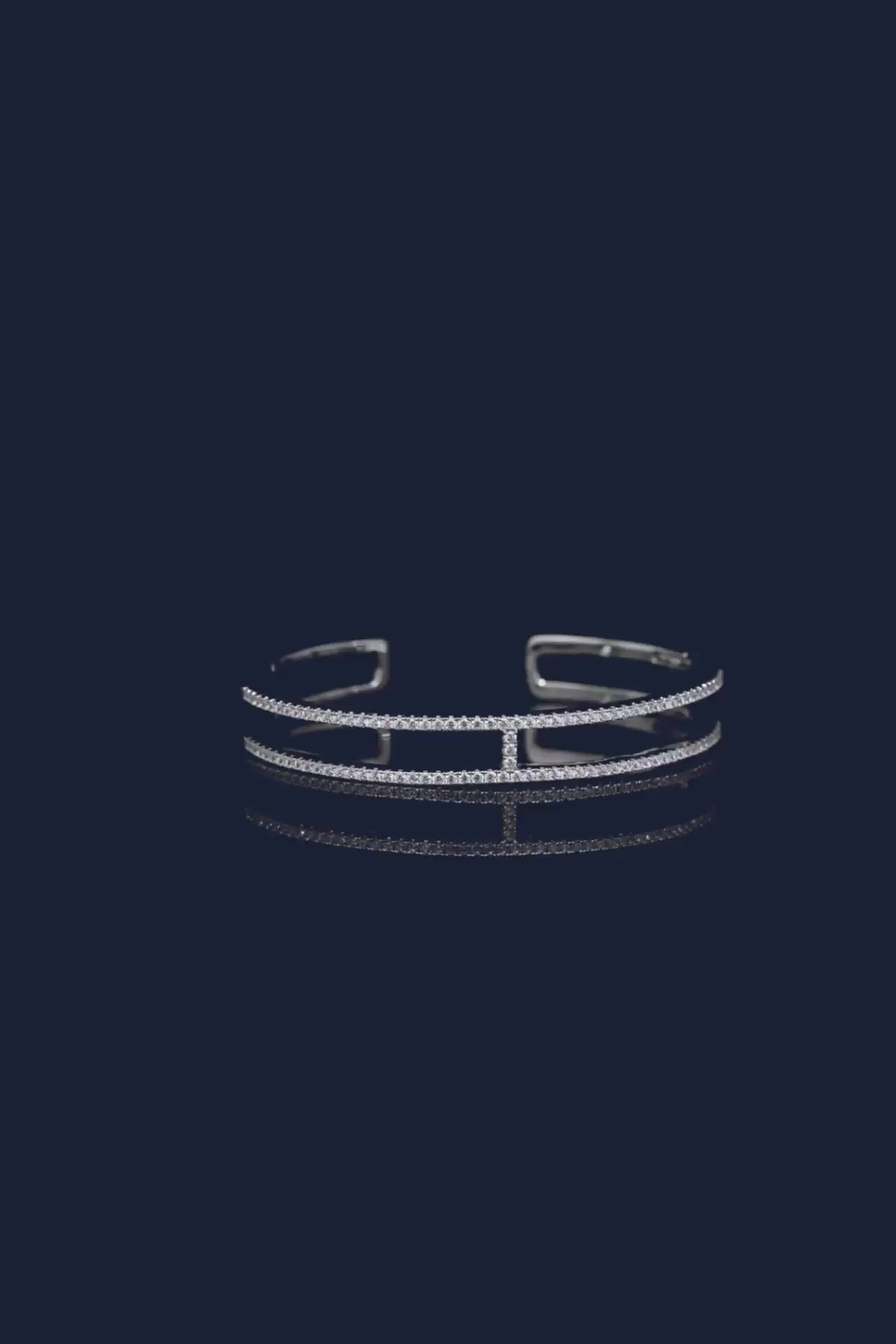 这款手镯采用纯银手工制成,并镶有白色合成立方氧化锆。
