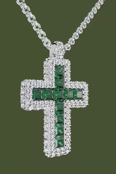 绿色密镶十字架可调节项链