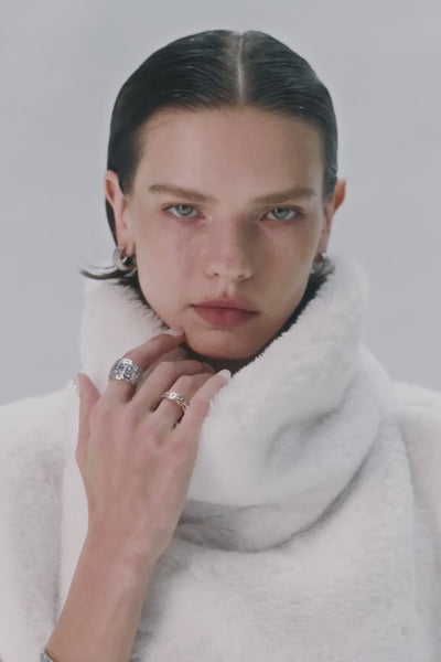 银白交织镶嵌璀璨闪锆,呈现光影折射时穿透冰裂形成的几何纹理。