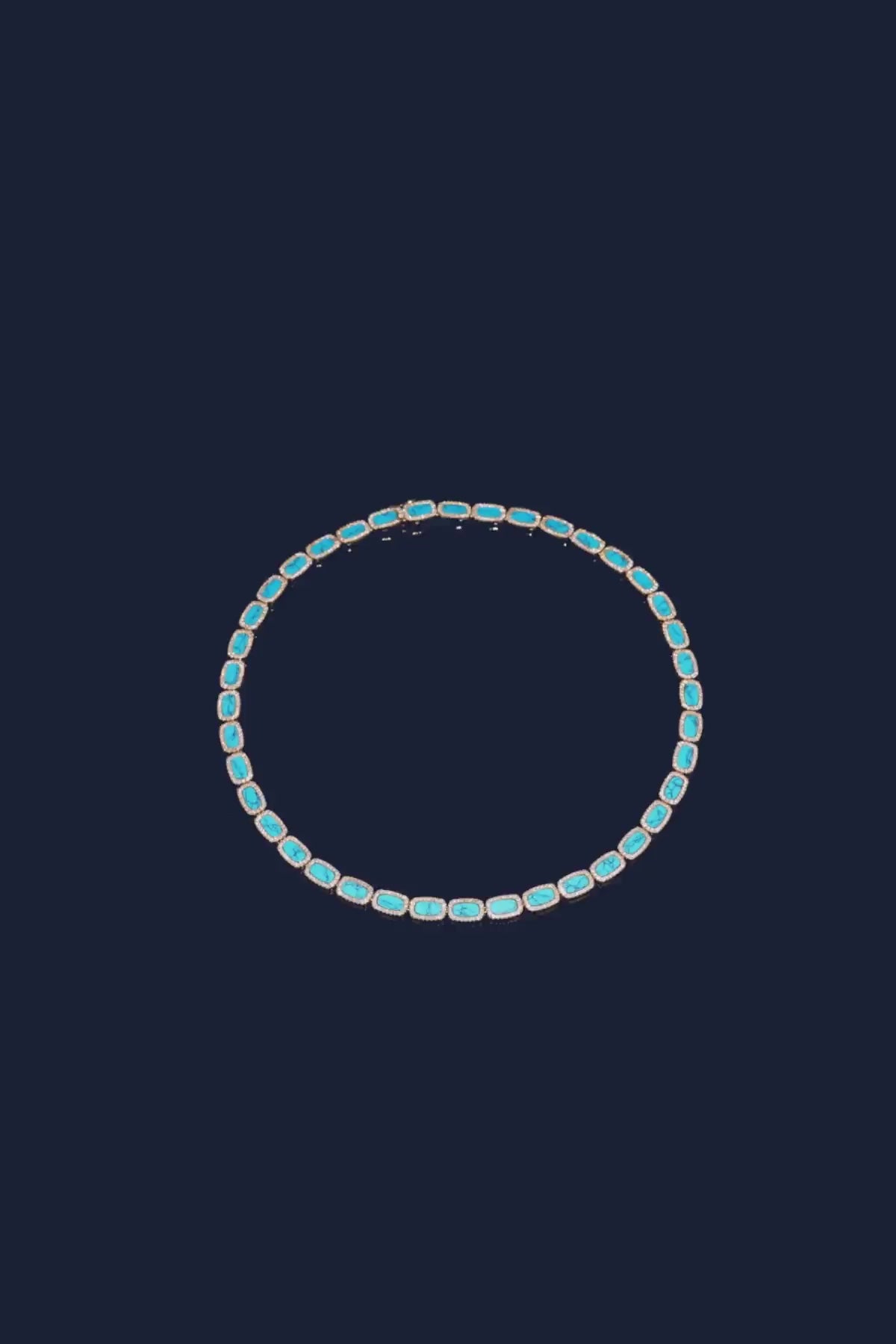 这款项链采用APM合金制成,表面镀有18k金。微镶以白色合成立方氧化锆,细节点缀绿松石。