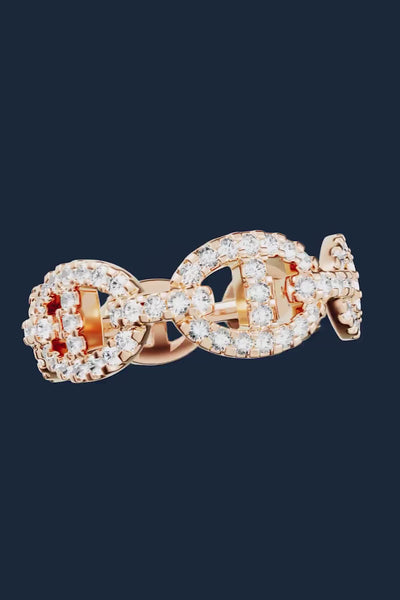 这款戒指采用 APM 玫瑰合金材质,表面镀18K金,微镶白色立方氧化锆。