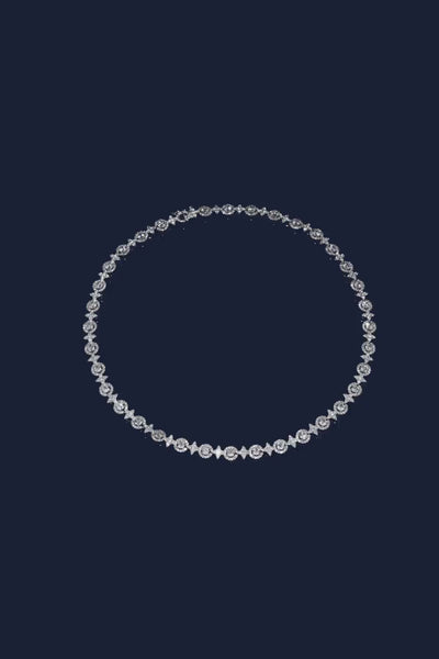 这款项链采用纯银手工制成,微镶了白色合成立方氧化锆。