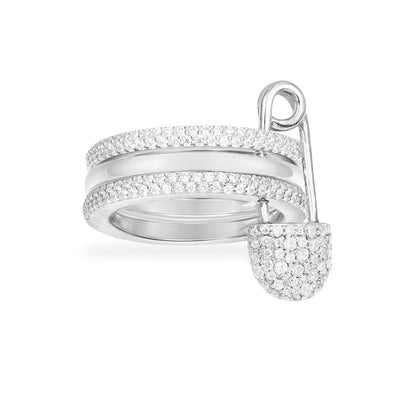 Triple Hoops And Safety Pin Ring - Silver